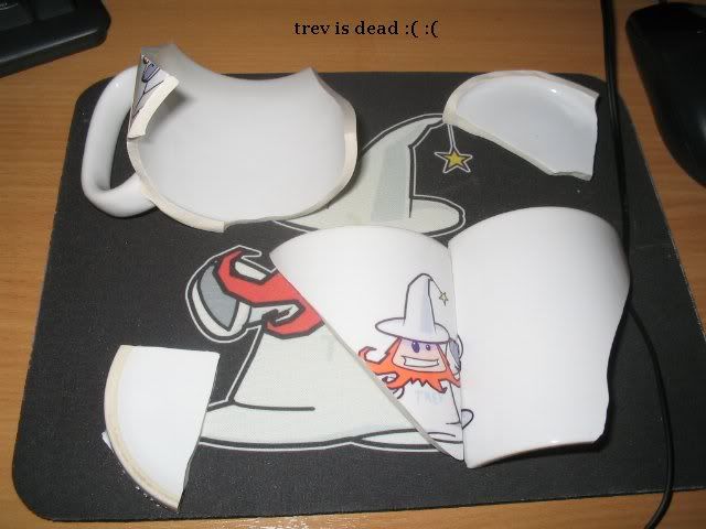 some bugger smashed my magical trevor mug at work and hid it, i was rooting around trying to find him today and this is what i found left of him ...